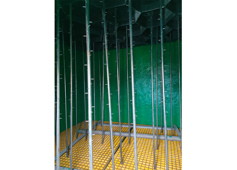 濕式電除塵器主要由進出口煙道、除塵器殼體、導流板、整流格柵、陽極收塵板、陰極線、絕緣箱、沖洗水系統、電源及控制系統組成。主要類似于干式電除塵器,能處理水平活垂直流動的煙氣;管式的集塵極一般為多根并列的圓形或多邊形金屬管,中間分布電暈線,只能處理垂直流動的煙氣。濕式電除塵器外部構件采用普通碳鋼,內表面刷涂層,安裝時要注意內表面的破損,特別是焊接點、構件連接處等。外殼的外部不需要保溫,因為煙氣溫度低于飽和溫度,因而外殼處的煙氣也幾乎沒有降溫。總體來看,管式集塵極要比板式的、便于布置且占用空間少。