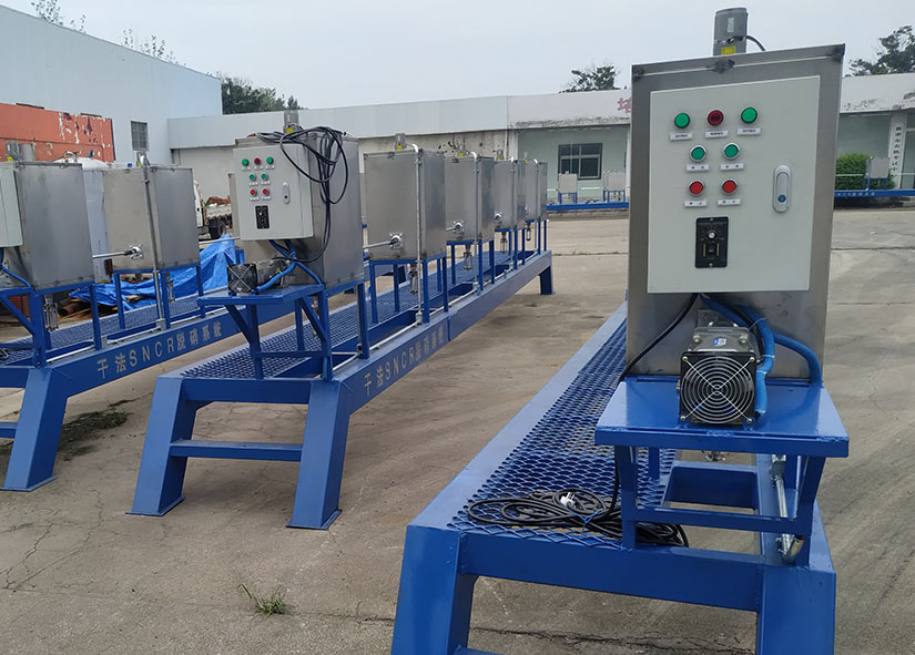 本公司研發的干法SNCR脫硝技術并以其“投資低,效果好,安裝簡易,操作簡單,運行成本低”等特點被迅速推廣應用。該設備是采用輸送設備將脫硝劑噴入爐膛或者煙道溫度在850℃-1000℃的區域,被高溫激活氣化后,與煙氣中的NOx發生還原反應,將NOx還原成氮氣和水從而實現脫除NOx的目的。同時可根據當地排放標準,來調整試劑用量,達到脫硝的目的。