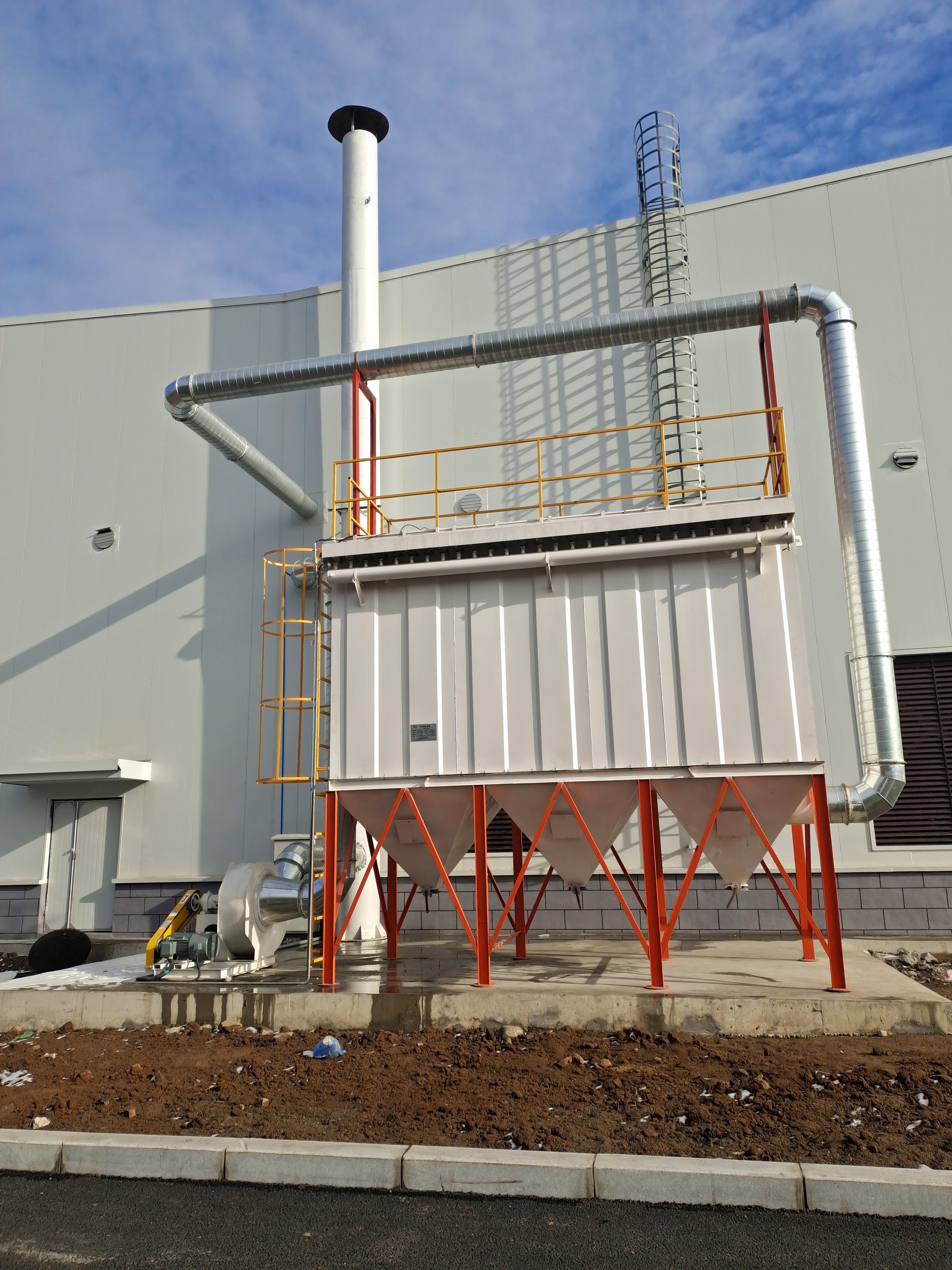 1.箱體:包括袋室、預除塵室、凈氣室、多孔板、濾袋、濾袋骨架。箱體設計耐壓9000Pa。